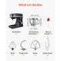 Complete Mixing Solution: Ready to tackle anything in the kitchen! Our stand mixer features 3 professional mixing attachments: a dough hook for effortlessly kneading pizza or other heavy dough, a flat beater for whipping up mashed potatoes, cake batters, or frosting, and a whisk for creating light mixtures like fluffy whipped cream or egg whites.