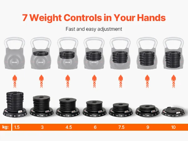 Precise Training: Our kettle bell offers seven adjustable weight levels, making it ideal for a scientifically planned workout to ensure each session is accurate and efficient.