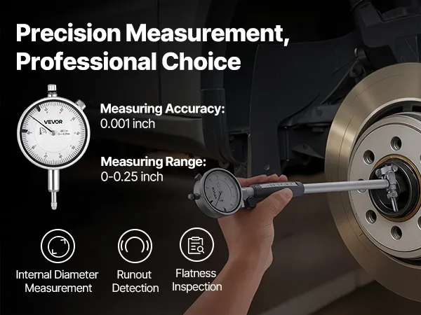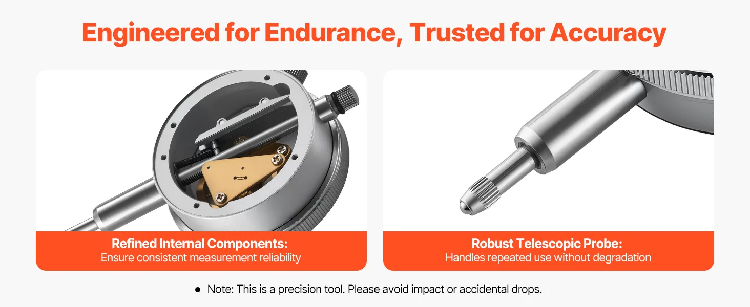 Accurate Measurement: This dial indicator delivers 0.001 inch precision with clear readings and stable zero return. Ideal for lathes, milling machines, and other demanding industrial applications, helping reduce errors and improve efficiency
