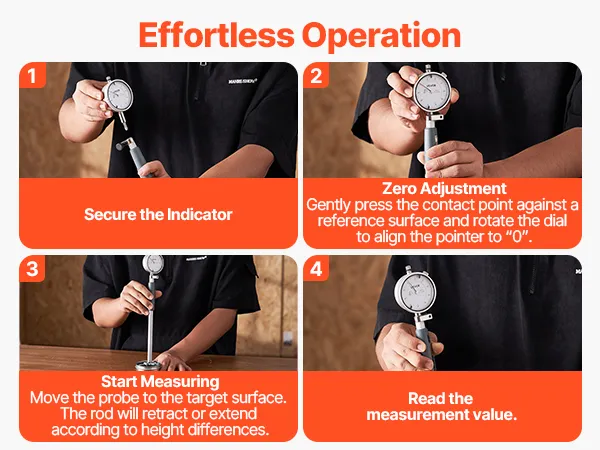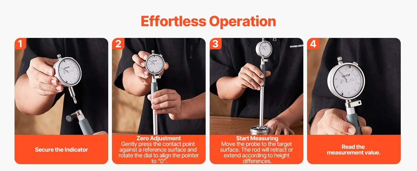 From mounting and base fixing to zeroing, measuring, and reading, this machinist dial indicator requires only four steps. Technicians and DIY users alike can master it quickly for efficient, stable, and accurate measurement.
