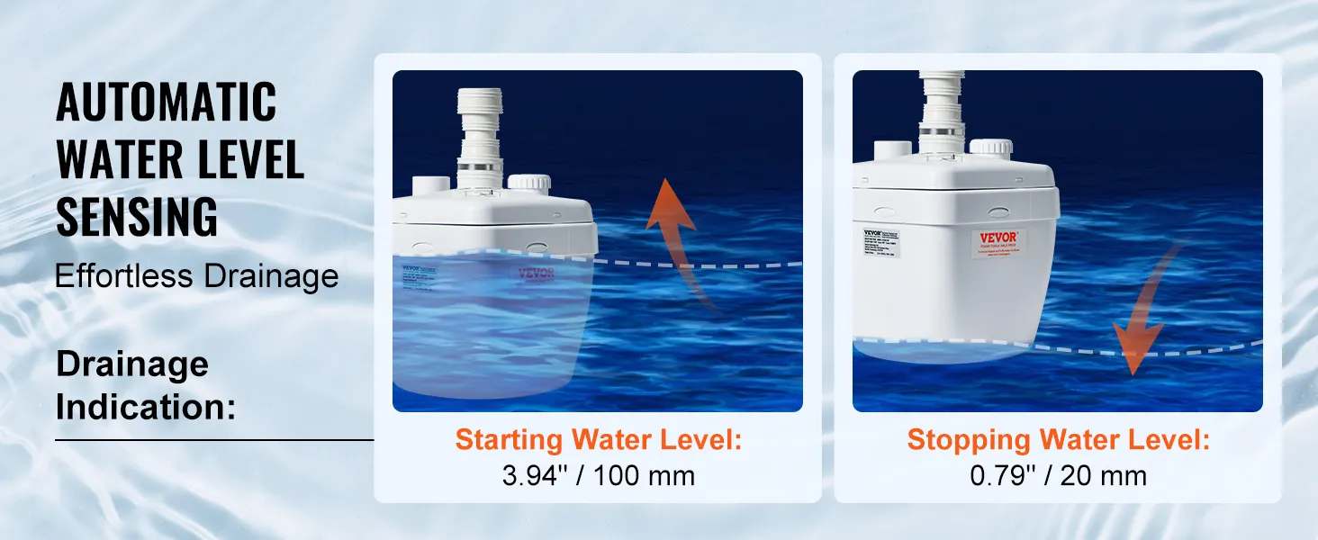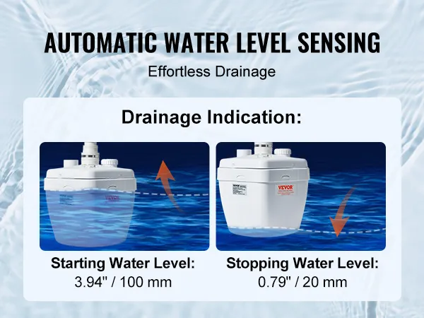 With our drain pump, controlling the water level is a breeze! It lets you set the starting water level at 3.15" and the stopping water level at 1.57", saving your effort for more important tasks.