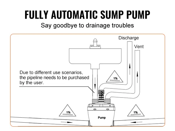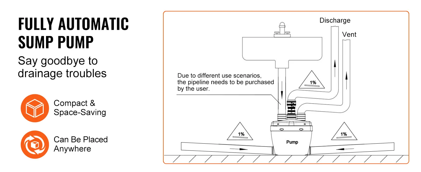 Forget about constantly monitoring your sump pump – ours is fully automatic! It's perfect for basements where drainage is a challenge. Its compact size doesn't take up much space, making it easy to integrate with existing indoor pipelines.