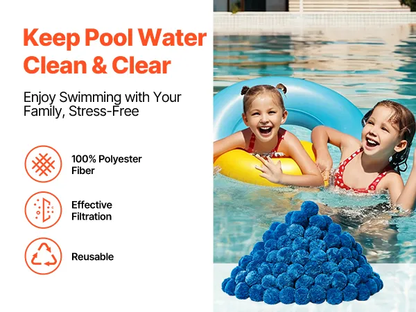 Posuňte své filtrační schopnosti na vyšší úroveň s našimi bazénovými filtračními kuličkami, vyrobenými ze 100% modrého polyesterového vlákna. Naše kuličky poskytují vynikající filtrační výkon a jsou kompatibilní s různými filtračními systémy, jako jsou pískové filtry, kartušové filtry a DE filtry. Užijte si plavání v křišťálově čisté vodě během chvilky!