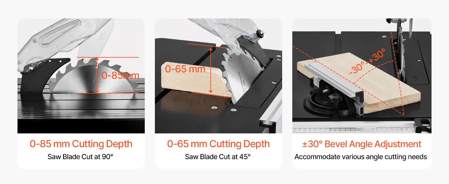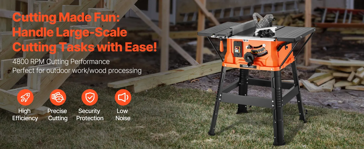 Vysokorýchlostné rezanie: Táto stolová píla na stavenisko je poháňaná robustným motorom s výkonom 1800 W a poskytuje vysokorýchlostné rezanie pri 4800 ot./min. Rezanie dreva rôznych veľkostí je hračka. 24-zubový kotúč výrazne zvyšuje účinnosť rezania a zaisťuje rýchlejšie a čistejšie rezy s menšou námahou.