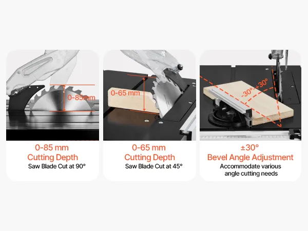 Presné rezanie zakaždým: Dosiahnite bezchybné rezy zakaždým s nastaviteľným paralelným pravítkom po celej dĺžke s meracou lištou. Či už robíte pozdĺžne alebo priečne rezy, táto stolová píla na stavenisko zaisťuje plynulý a spoľahlivý výkon. Ľahko nastavte kotúč na požadovaný uhol v rozsahu od -30° do 30° pre priečne rezy, čím pokryjete všetky bežné uhly rezu.