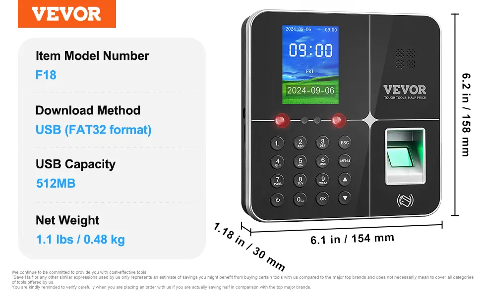 Meet the biometric clock with 4 verification methods. It can store 1,000 fingerprints, passwords, and RFID cards, plus 300 faces and 100,000 information records. Easy USB exports and no monthly fees. The smart choice for small businesses.