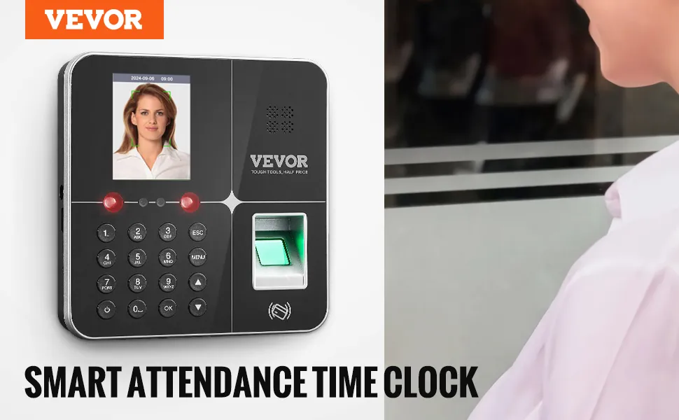 VEVOR Time Clock, Employee Attendance Machine with Face, Fingerprint, RFID Cards and PIN Punching in One, Standalone Biometric Time Clock in Machine for Employees with 5 RFID Cards & No Monthly Fees