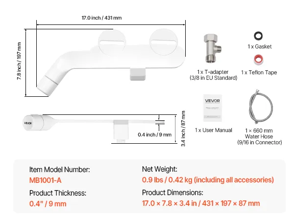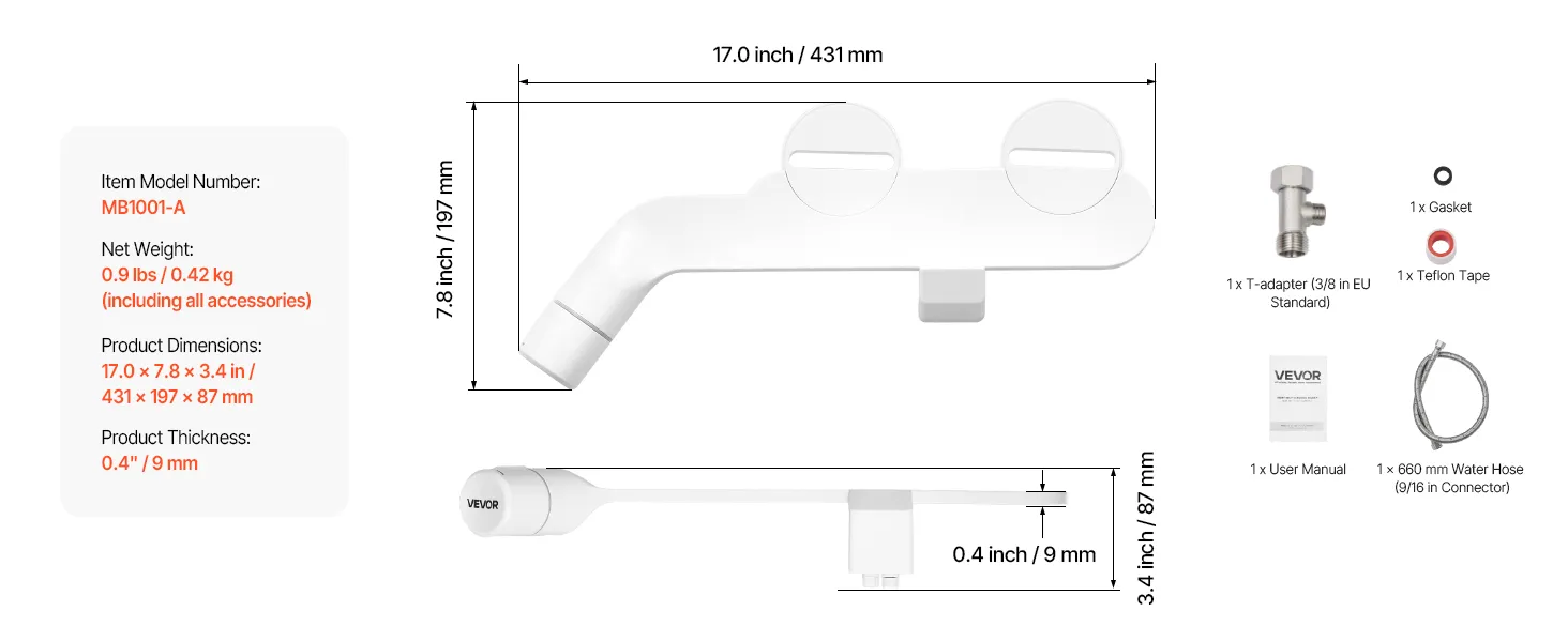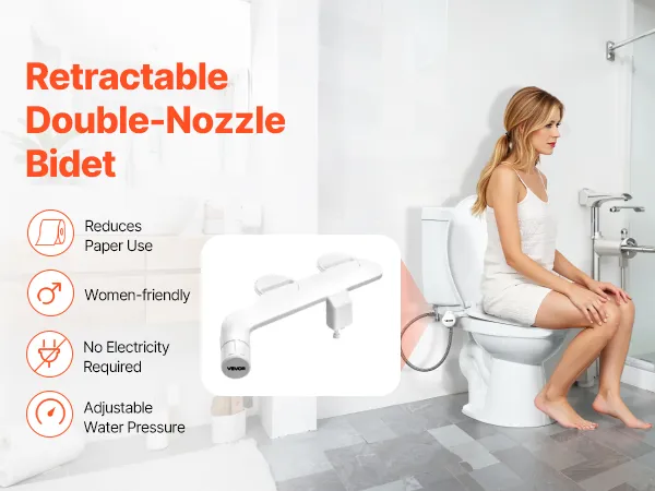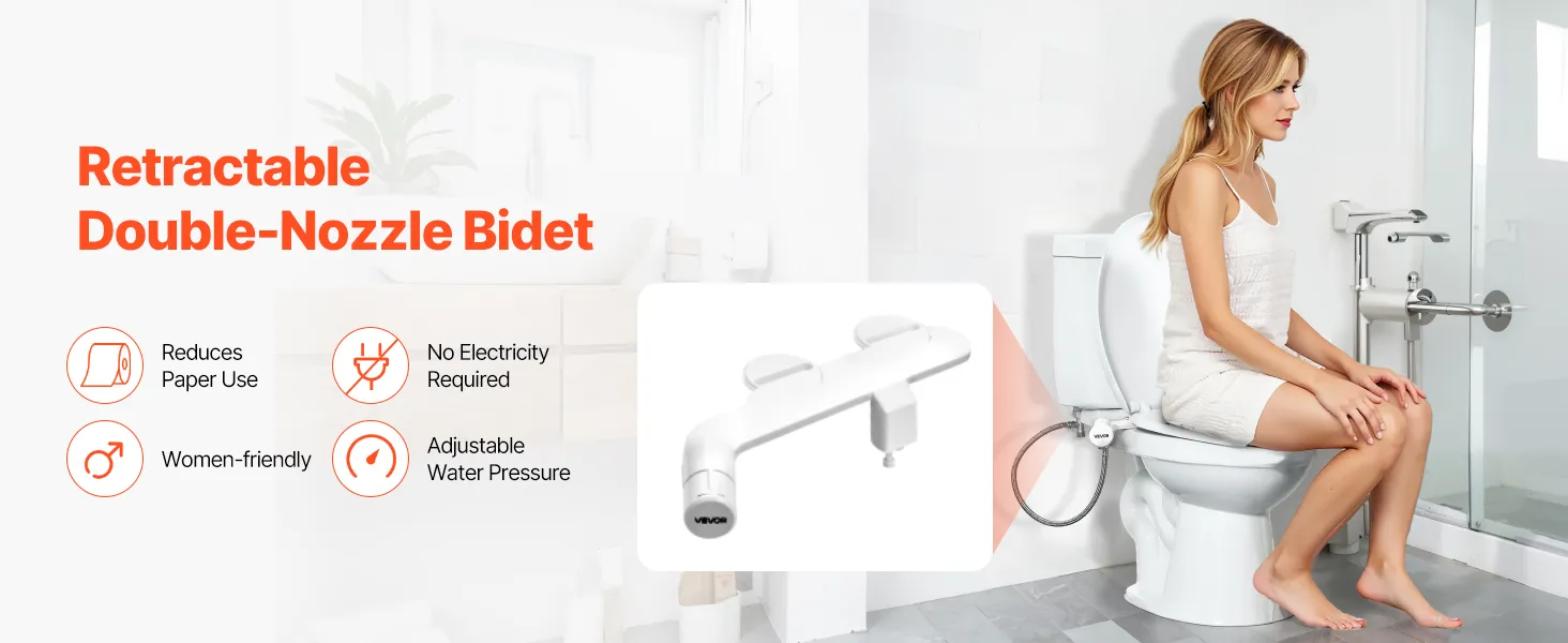 VEVOR Bidet Attachment for Toilet, Non-Electric Bidet Toilet Seat Attachment - Dual Retractable Nozzles, Adjustable Cold Water Pressure, Stainless Steel Inlet, Ideal for Rear and Feminine Wash, White VEVOR Bidet Attachment for Toilet, Non-Electric Bidet Toilet Seat Attachment - Dual Retractable Nozzles, Adjustable Cold Water Pressure, Stainless Steel Inlet, Ideal for Rear and Feminine Wash, White