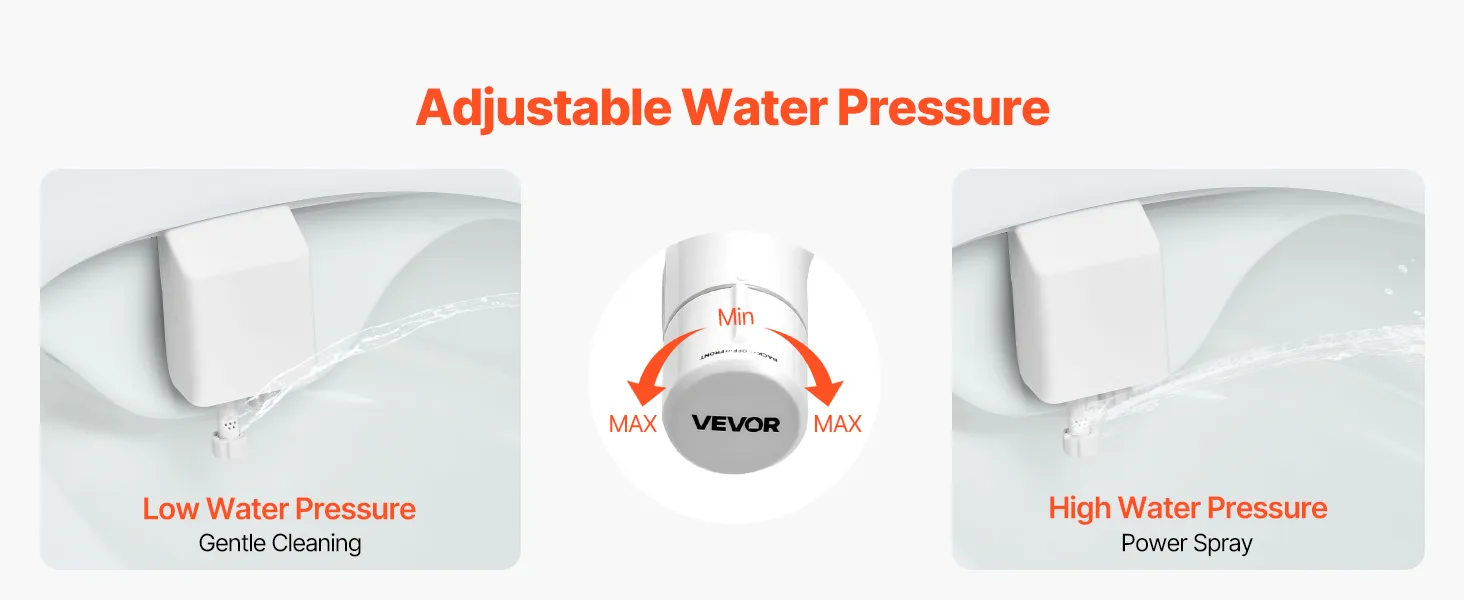 • Adjustable Water Pressure: This toilet seat bidet attachment lets you adjust the spray from soft to strong with a simple twist of the knob, making it easy and comfortable for both kids and seniors.