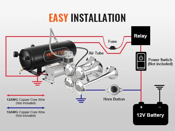 Universal 12V Compatibility: Our train horn kit is designed for any vehicle with a 12V battery system, making it suitable for trucks, SUVs, cruise ships, and more. Its universal compatibility ensures ease of use without concerns about incompatibility.