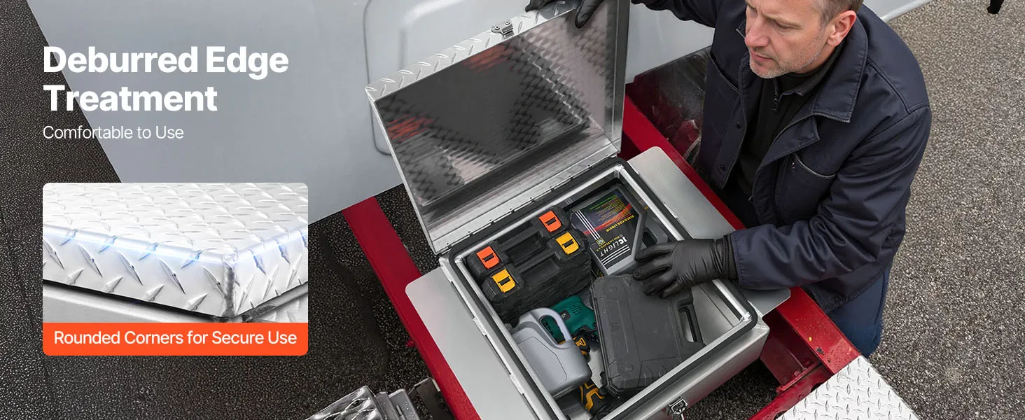 Dual Sealed Protection: Featuring seamless welding combined with built-in rubber sealing strips, this truck toolbox provides dual-layer protection. Even in rainy or humid conditions, your tools stay dry and clean, helping avoid corrosion and extend lifespan