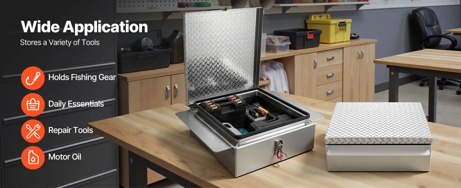 Versatile Applications: This truck toolbox can be installed on pickup trucks, RVs, trailers, and more. Whether for daily transport, outdoor adventures, or on-site work, it fits multiple scenarios and keeps your tools organized wherever you need them