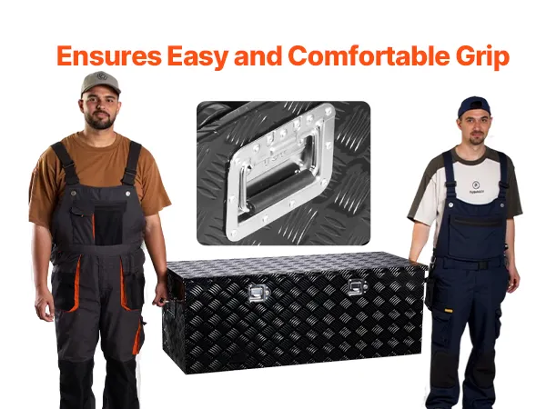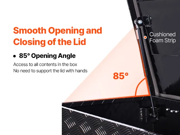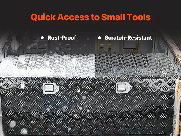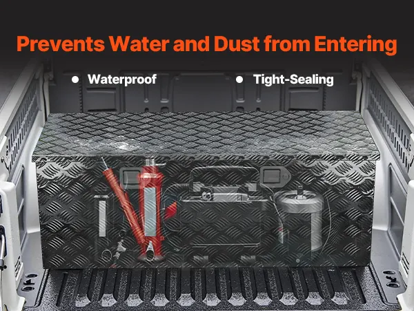Waterproof and Corrosion-Resistant: The aluminum tool box lid features folded edges and an inner foam strip, ensuring a tight seal that blocks rain and dust from entering. This keeps your tools dry even during heavy rain or dusty conditions