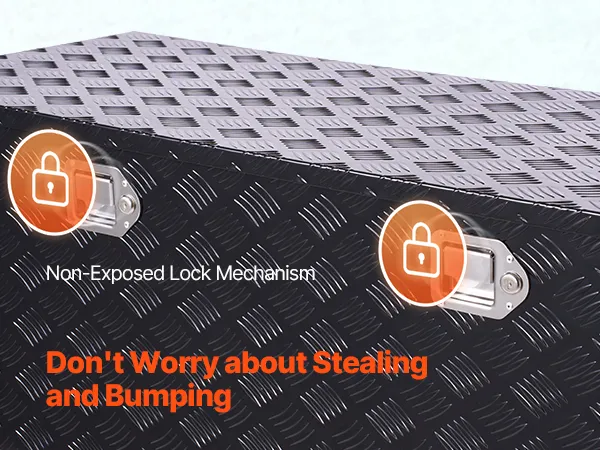 Anti-Prying Dual Locks: The aluminum truck box is equipped with two embedded locks and four keys. The lock bodies are integrated into the toolbox, making them difficult to pry open or cut with tools. This design also reduces the risk of scratches or impacts during transit