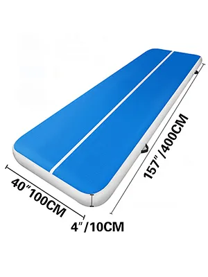 13FT Air tracks made of 1.2mm PVC brushed material, durable, waterproof, wear-resisting, designed for long-lasting use. Enough thickness ensures less chance of being hurt, provides more protection, especially for children.