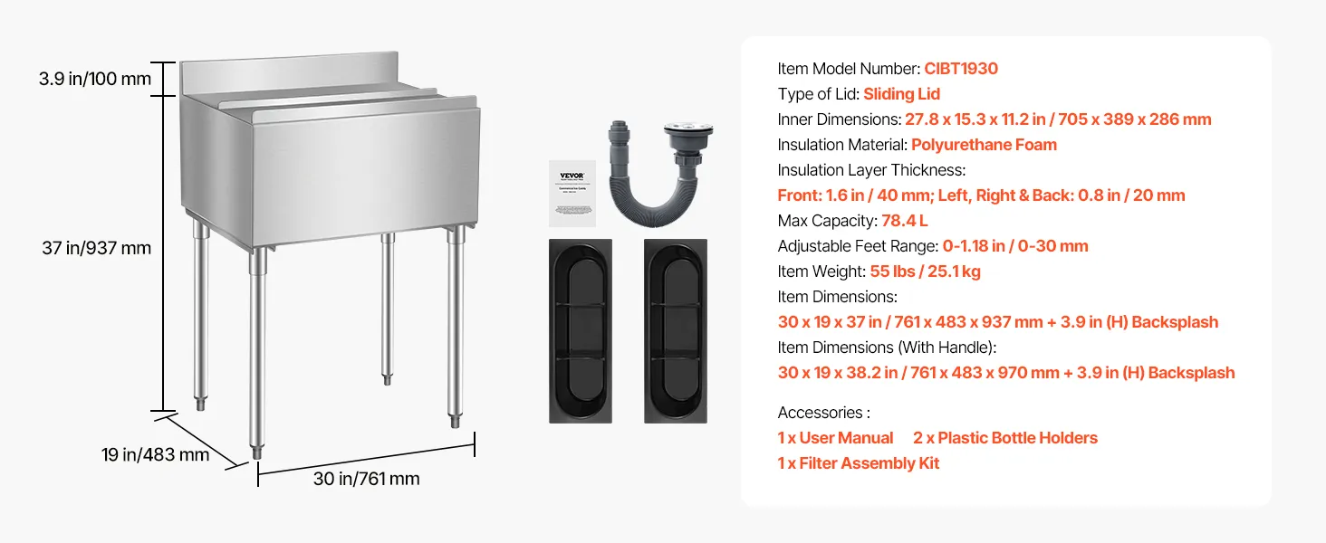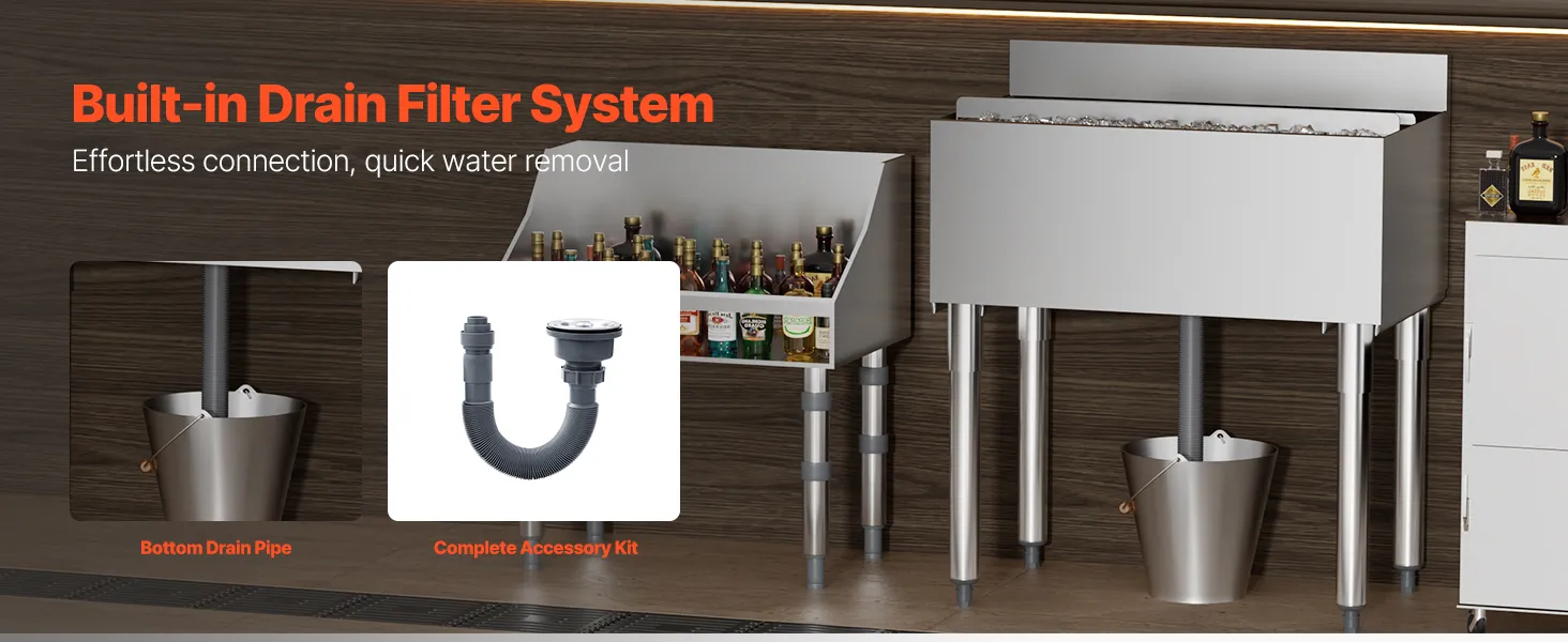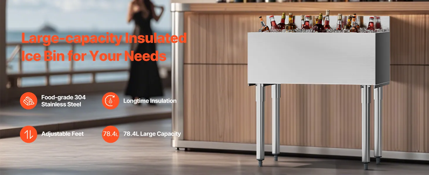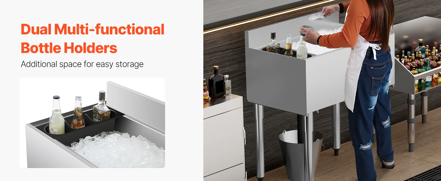 Επαγγελματικός κάδος πάγου VEVOR, κάδος πάγου κάτω από τη ράβδο 78,4 L, παγοθήκη από ανοξείδωτο ατσάλι 30 x 19 x 37 ίντσες με συρόμενο καπάκι, θήκες για μπουκάλια, ρυθμιζόμενα πόδια, ψυγείο-καρότσι για κοκτέιλ για μπαρ, εστιατόριο, παμπ