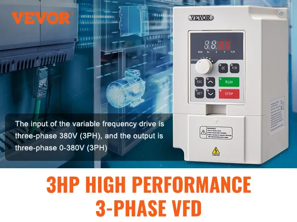 VEVOR VFD 3HP, 2,2 kW, 5 A, 3fázový AC 380 V vstup na 3fázový AC 0 - 380 V výstup Frekvenční měnič, vstup 50/60 Hz, výstup 0-2000 Hz, VFD pro regulaci otáček vřetenového motoru