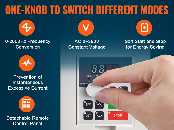 Frekvenční měnič je navržen s ohledem na uživatelskou přívětivost, disponuje intuitivním displejem a snadno použitelnými tlačítky pro rychlé spuštění. Součástí je také odnímatelný panel, který lze připojit k odpovídajícímu rozhraní pro dálkové ovládání, což nabízí větší pohodlí.