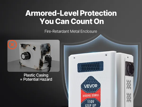 Security Comes First: This voltage converter transformer is built with six protections, including intelligent overload, under/over-voltage, short-circuit, overheat, damp-proof circuit board, and high-temperature insulating material