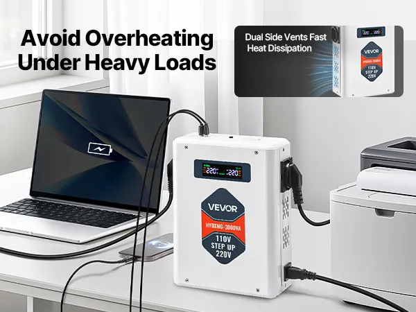 Q: What power rating should I choose for my voltage converter? A: Check your device's power rating (in watts) and ensure the converter's rated power is equal to or greater than your device's power. If your devices total 1600W, we recommend choosing a converter rated at 2000VA or higher for more secure operation.
