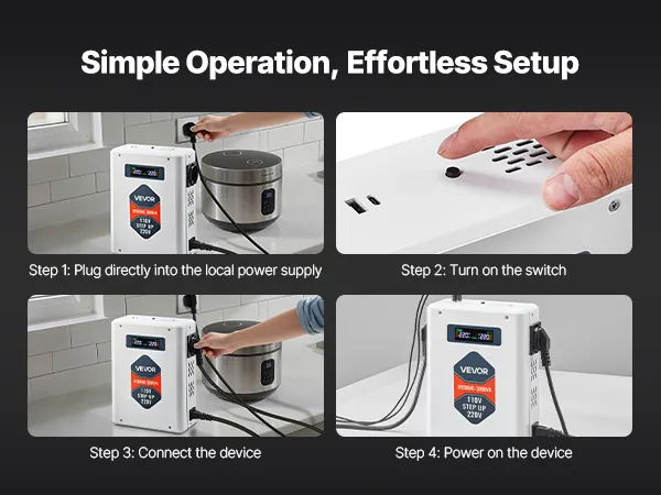 Plug-and-Play Convenience: Our step up transformer makes converting 110V to 220V effortless. Simply plug in the power supply, connect your 220V appliance, and enjoy powerful performance without hassle. Ideal for using 220V appliances in 110V areas