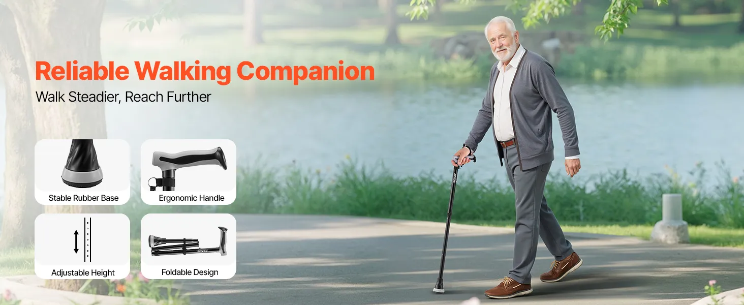 VEVOR hůl pro muže a ženy, skládací hůl s 8stupňovou nastavitelnou výškou a protiskluzovou špičkou, lehká a přenosná hliníková pomůcka pro mobilitu a seniory, nosnost 113 kg