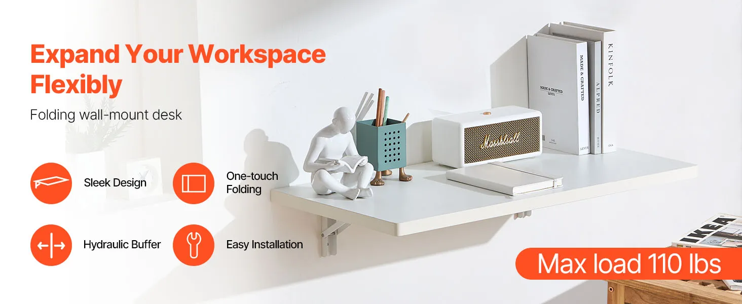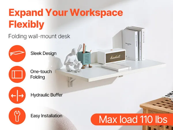 Tágas felületével ez a falra szerelhető íróasztal változatos lakhatási és munkaigényeket elégít ki. Akár íróasztalként, akár munkaállomásként használja, kényelmesen elfér rajta dekorációk, könyvek, laptopok és szerszámok, így minden rendezett marad.