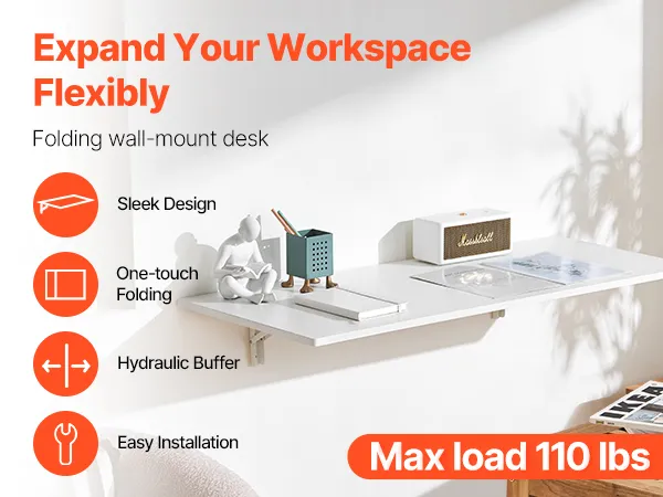 53 kg-os nagy teherbírás: Kompakt mérete ellenére ez a falra szerelhető asztal akár 53 kg-ot is elbír vastag, 2,5 cm-es anyagának köszönhetően. Stabil mindenhez, a kis szerszámoktól a nagy szerszámokon, laptopokon és nehéz könyveken át a dekorációs tárgyakig, biztosítva, hogy minden a helyén maradjon.