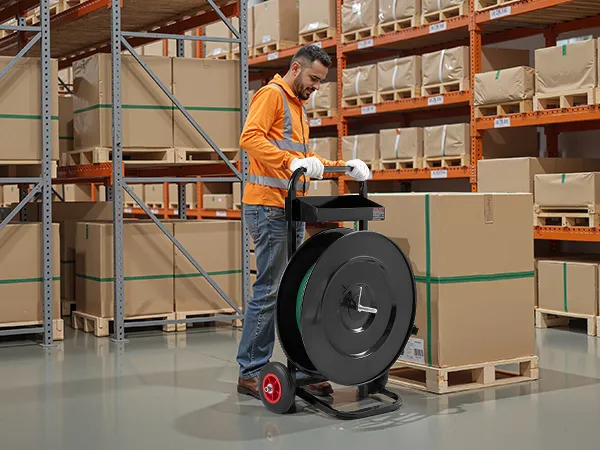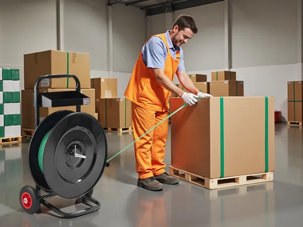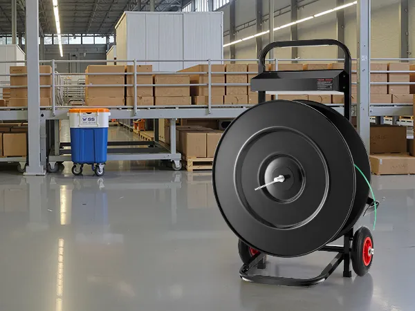 The strapping cart is made of high-strength carbon steel with a corrosion-resistant coating. It is wear-resistant, durable, and maintains shape across various environments.