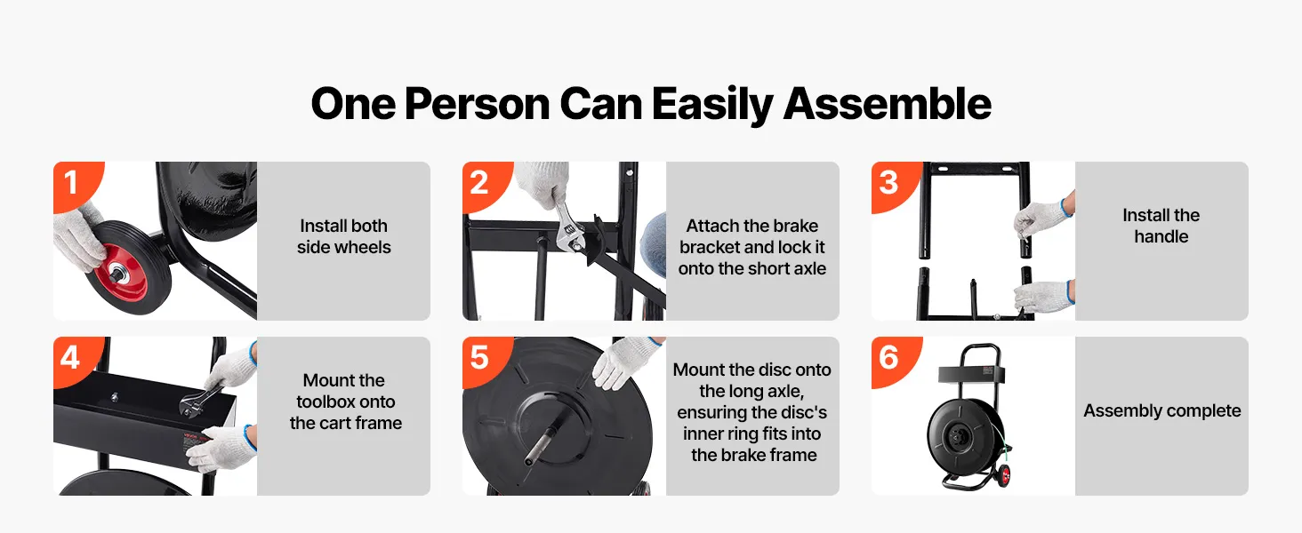 Easy Assembly & Use: Follow the quick guide to set up this moveable strapping dispenser in minutes. Once assembled, simply place and remove the strapping roll for easy daily use. Its durable powder-coating resists corrosion