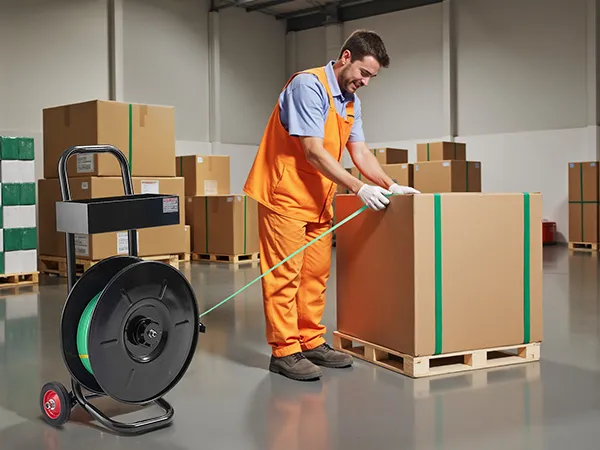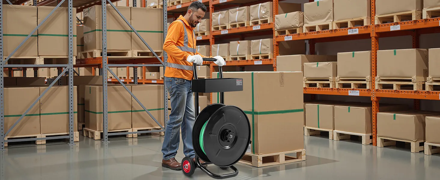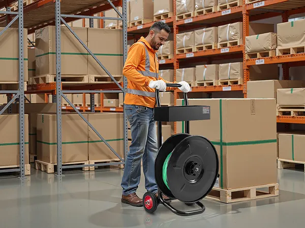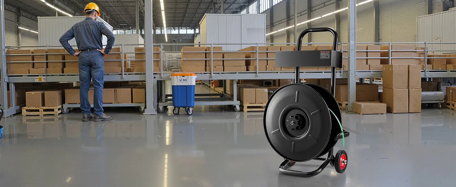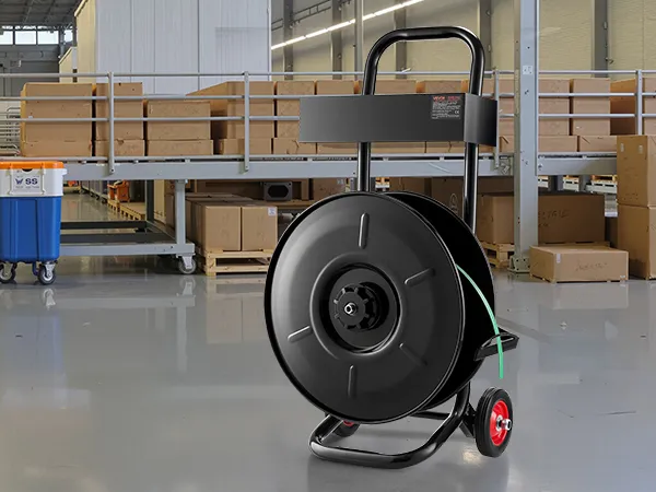 The strapping cart is made of high-strength carbon steel with a corrosion-resistant coating. It is wear-resistant, durable, and maintains shape across various environments.