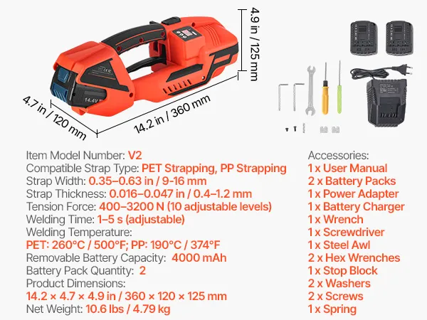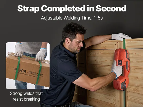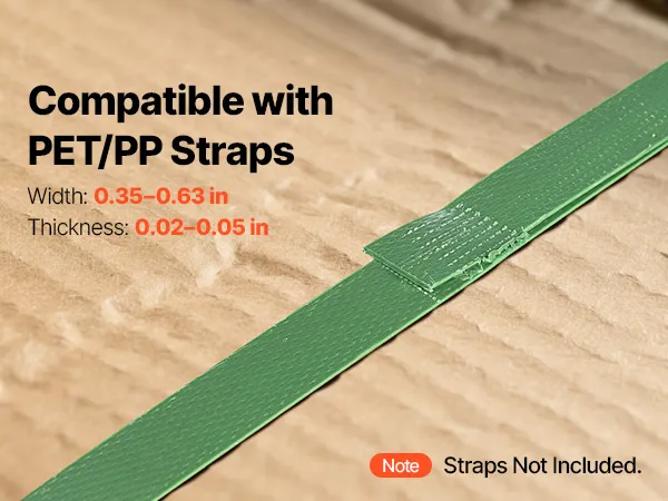 Strong & Secure Seal: The built-in heating system of the automatic strapping tool provides 260℃ (PET) / 190℃ (PP) stable welding, fit for PET/PP straps (9-16 mm wide, 0.4–1.2 mm thick). You get a solid joint in seconds, no breaks, no slips