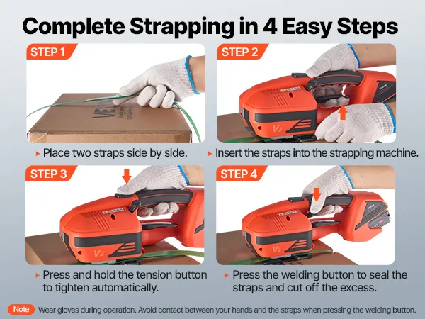 Simple & Durable: Just overlap straps, tighten, weld, and cut—done! Even beginners strap like pros. The high-strength nylon body of the banding tensioner machine with steel gears and cutter ensures long-lasting strength for factory or warehouse use