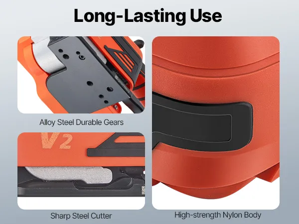 Long-lasting Power: Our electric banding tool includes two 4000mAh batteries, giving you 300–350 straps per charge. Each battery charges in just 90 mins. The hollow cup motor stays cool for stable, nonstop strapping