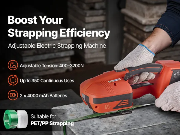The electric strapping machine gives you up to 3200N of tension, making heavy-duty strapping a breeze. It works well with PET/PP straps to keep packages tight and secure.