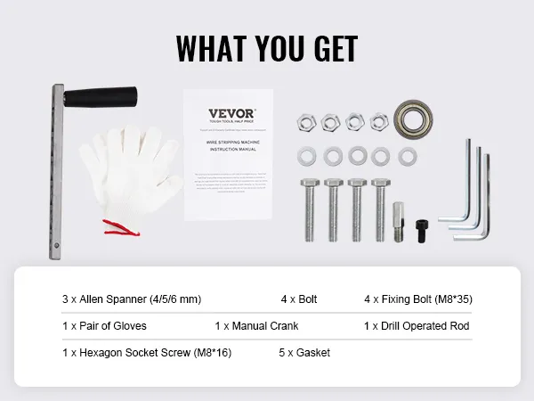 Kompletné príslušenstvo: Chceme, aby ste sa pri používaní nášho medeného odstraňovača cítili sebaisto, a preto sme pribalili pár rukavíc na ochranu vašich rúk pred nečistotami a zranením. Ale to nie je všetko! Pokyny sme doplnili aj o tipy na dokonalý uhol odizolovania, takže aj keď je to prvýkrát, môžete do toho hneď skočiť a začať s odizolovaním medi ako profesionál! S naším užívateľsky prívetivým dizajnom a užitočnými doplnkami z vás okamžite odizoluje drôty!
